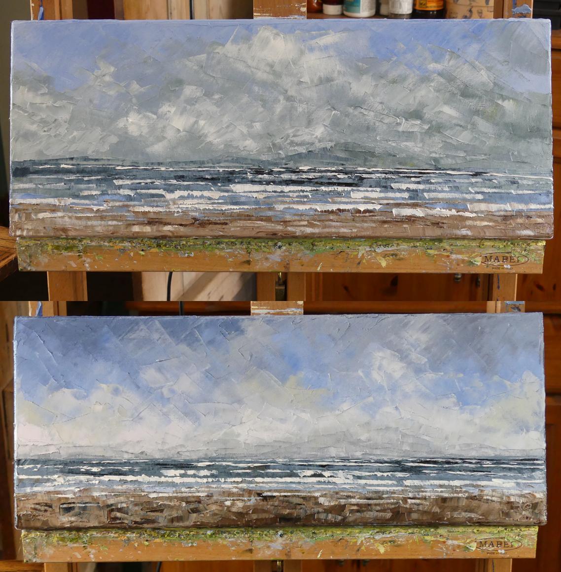 Hail, snow and sleet with a rumble of thunder thrown in this afternoon, so it was quite apt that I was painting oils of storms on the Solway today.