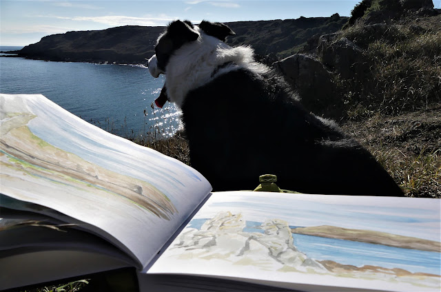 Well leaving at 3:30 am paid off as we were down at Coverack for just after lunch. The M6 was being diverted at junction 10A so we were glad to have sailed through that! In the late afternoon we went down to Chynhalls point - a glorious afternoon before a quick pint outside the Paris Hotel - where I saw the splash of, what the locals thought was, a tuna. It was great that it was warm enough to sketch outside in the sun! We've found summer again - for the moment.