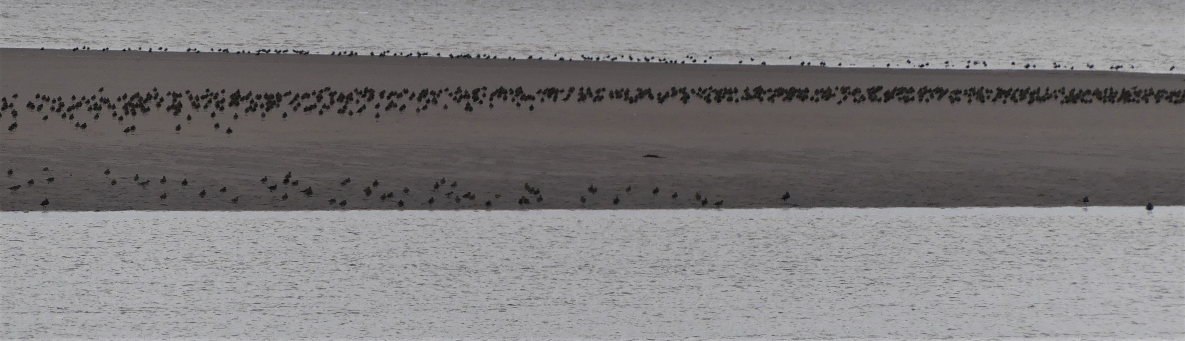 A walk out along the coast from Mawbray to Allonby gave us some spectacular views of waders: oystercatcher; dunlin; knot; turnstone; sanderling; bar-tailed godwits; and curlew - all in good numbers - especially the knot.