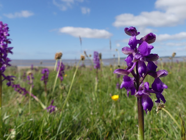 Everything seems to be coming out at once, so a visit to Silverdale to see the Green-winged Orchids. It's such a lovely site - very accessible and rather worryingly/ suprisingly, not roped off this year... Some large Early Purple Orchids too.